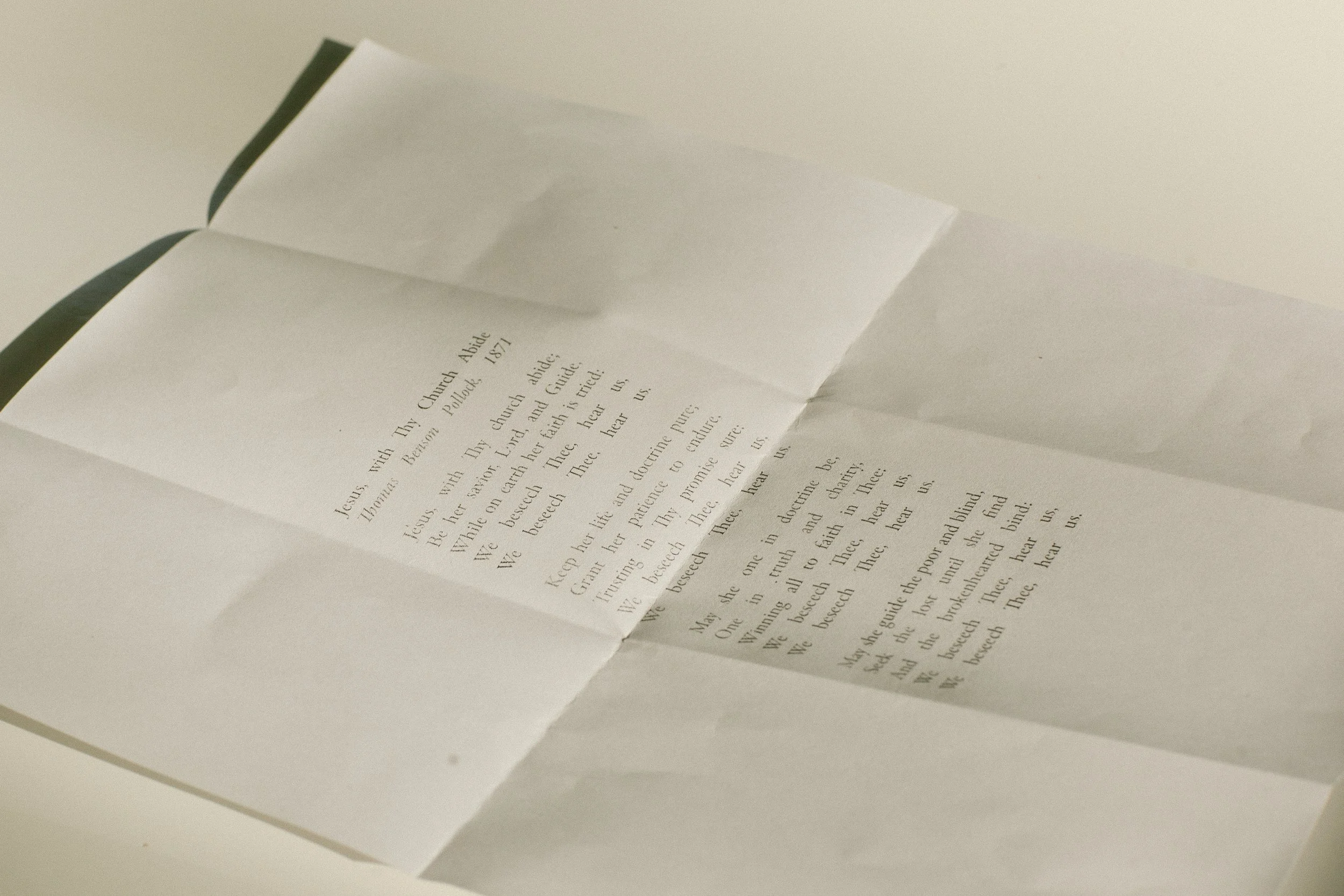 Thomas Benson Pollock wrote the hymn “Jesus, With Thy Church Abide” in 1871, and it stands as a powerful prayer prompt for believers. There are 18 original verses of Pollock's hymn, but each hymnal contains only a selection of those verses. He ends each verse with, “we beseech thee, hear us,” fervently asking the Lord to fulfill these requests. These selected verses can provide a foundation for prayer as we earnestly ask the Lord to continue building his Church and plead alongside other believers that the gates of hell would not prevail against it (Matt. 16:18).