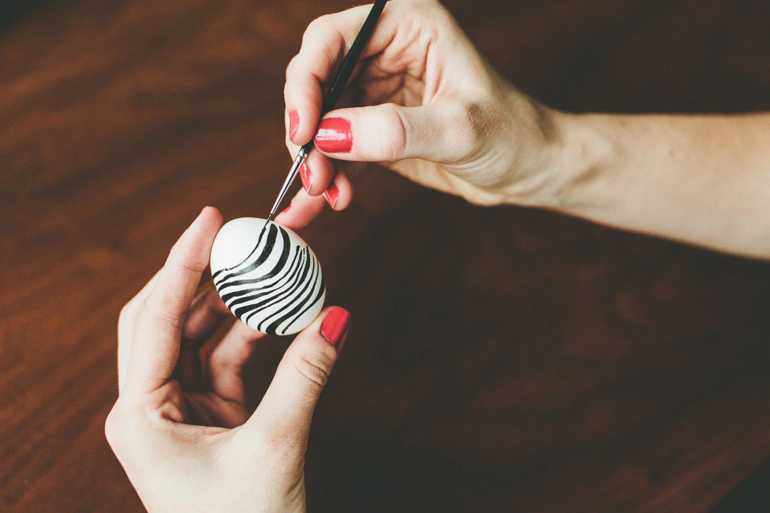 Hard-boiled eggsPaint mixing trayCalligraphy inkSmall round paintbrush